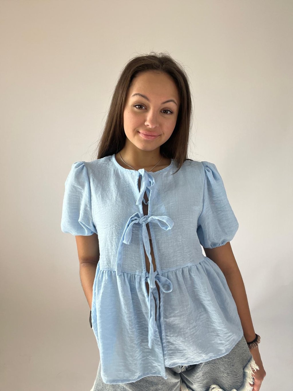 Blúzka s viazaním vpredu s pufovanými rukávmi z príjemného ľahkého materiálu