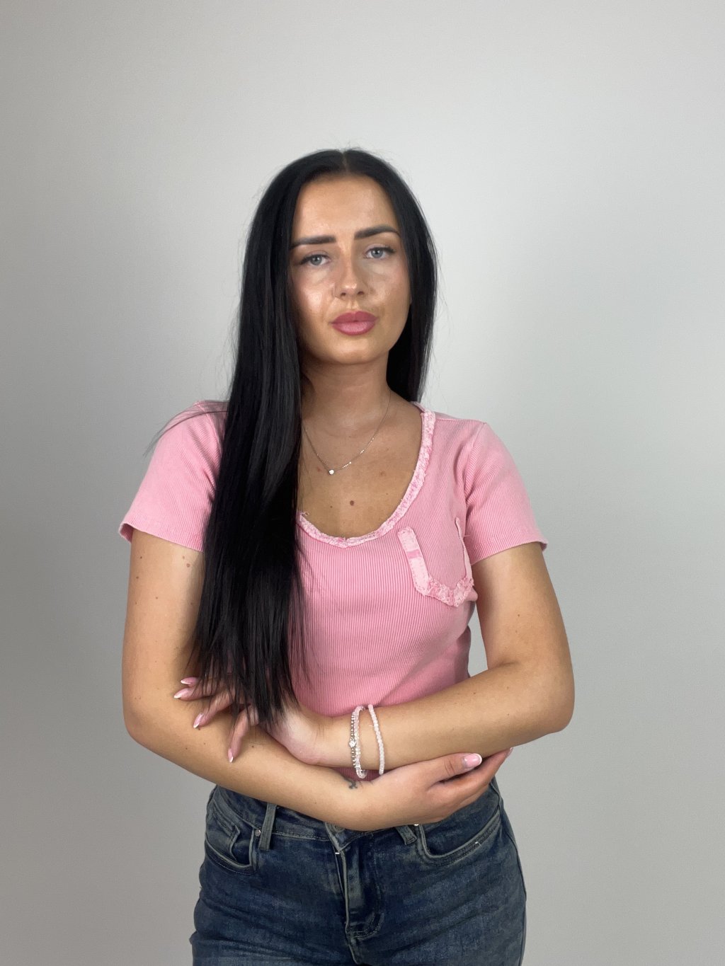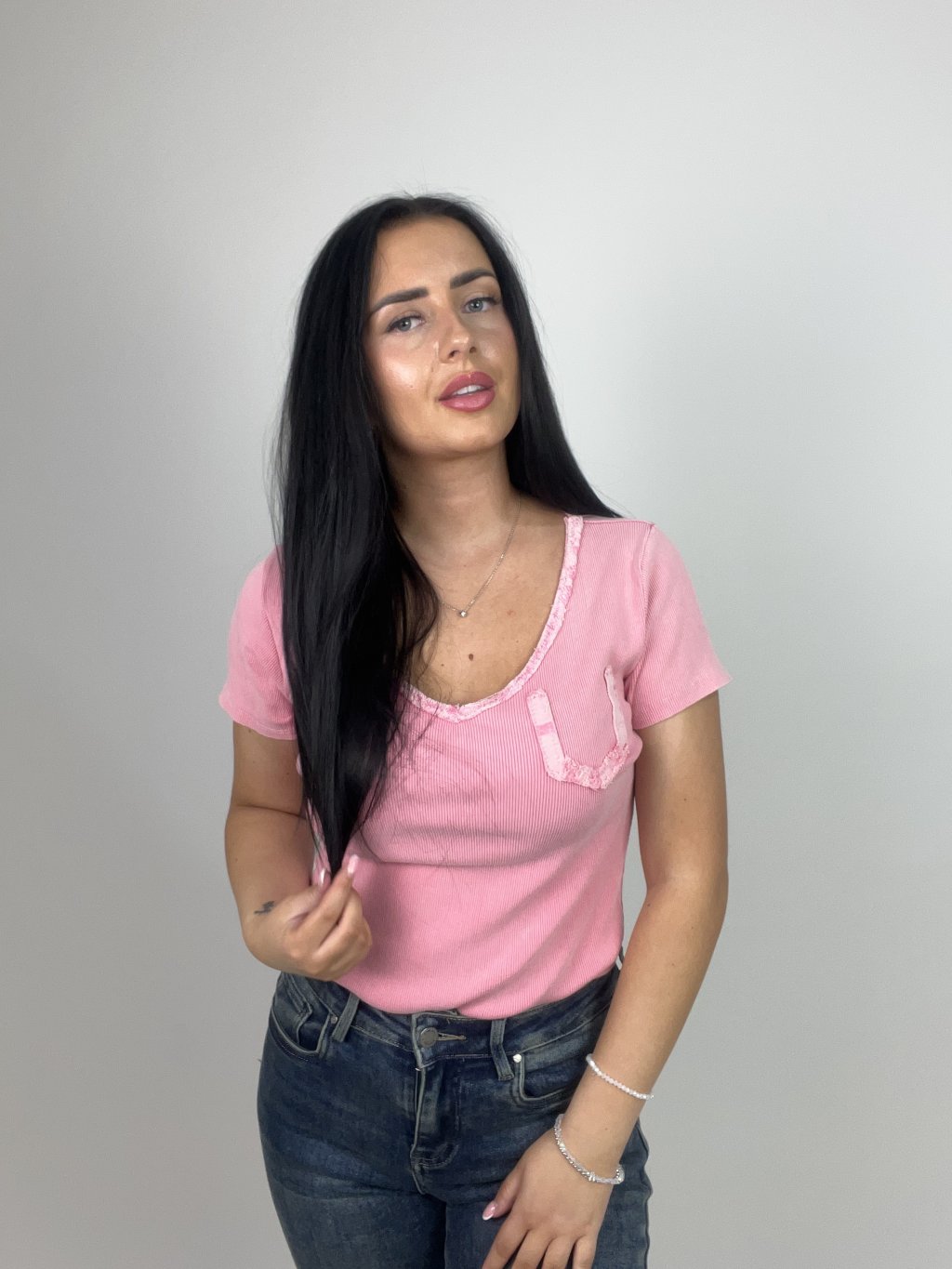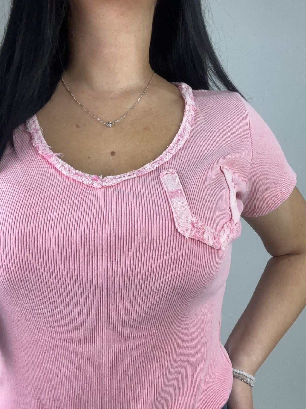 Dámske štýlové tričko s výstrihom do V, srdcom na chrbte