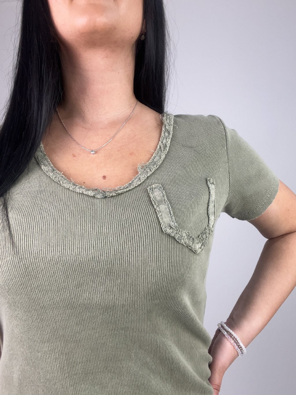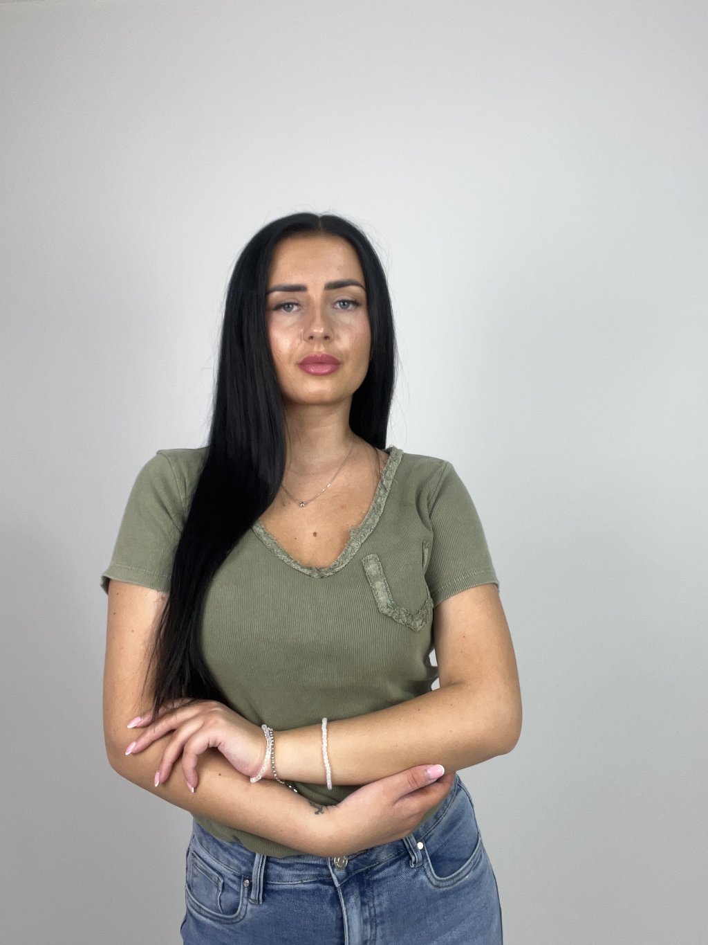 Dámske štýlové tričko s výstrihom do V, srdcom na chrbte
