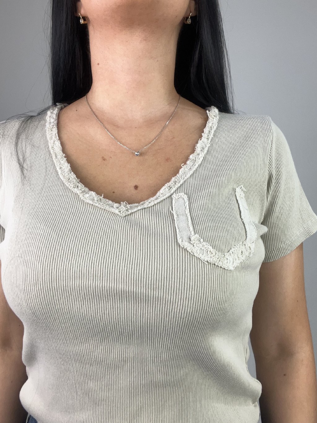 Dámske štýlové tričko s výstrihom do V, srdcom na chrbte