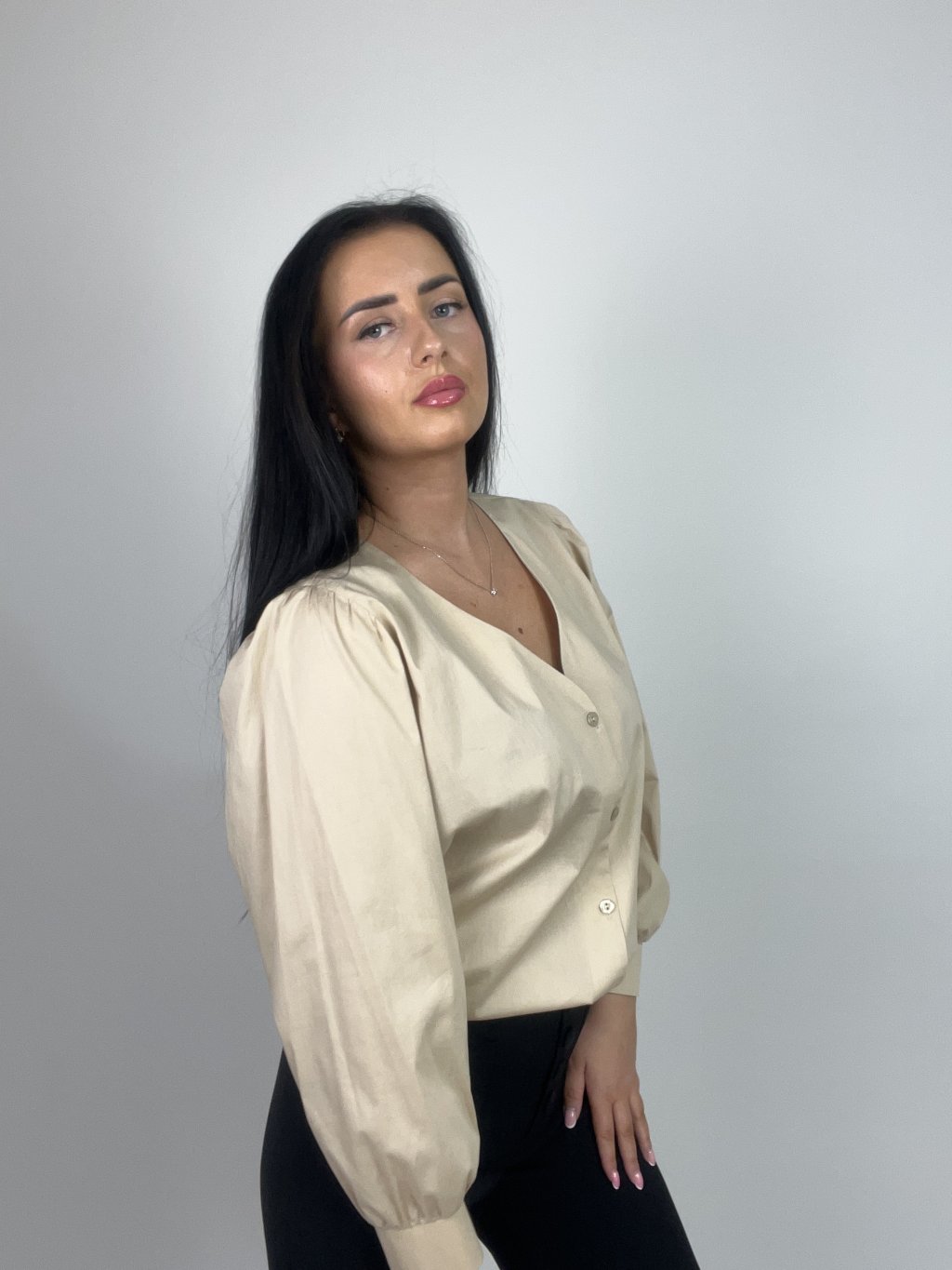 Košeľa Simply je veľmi ženská košeľa voľného strihu s véčkovým výstrihom a naberanými rukávmi, vyrobená z bavlnenej látky. V jarných farbách s džínsami vytvorí neformálny vzhľad a s klasickými nohavicami v tlmených farbách vytvorí klasickejší vzhľad.