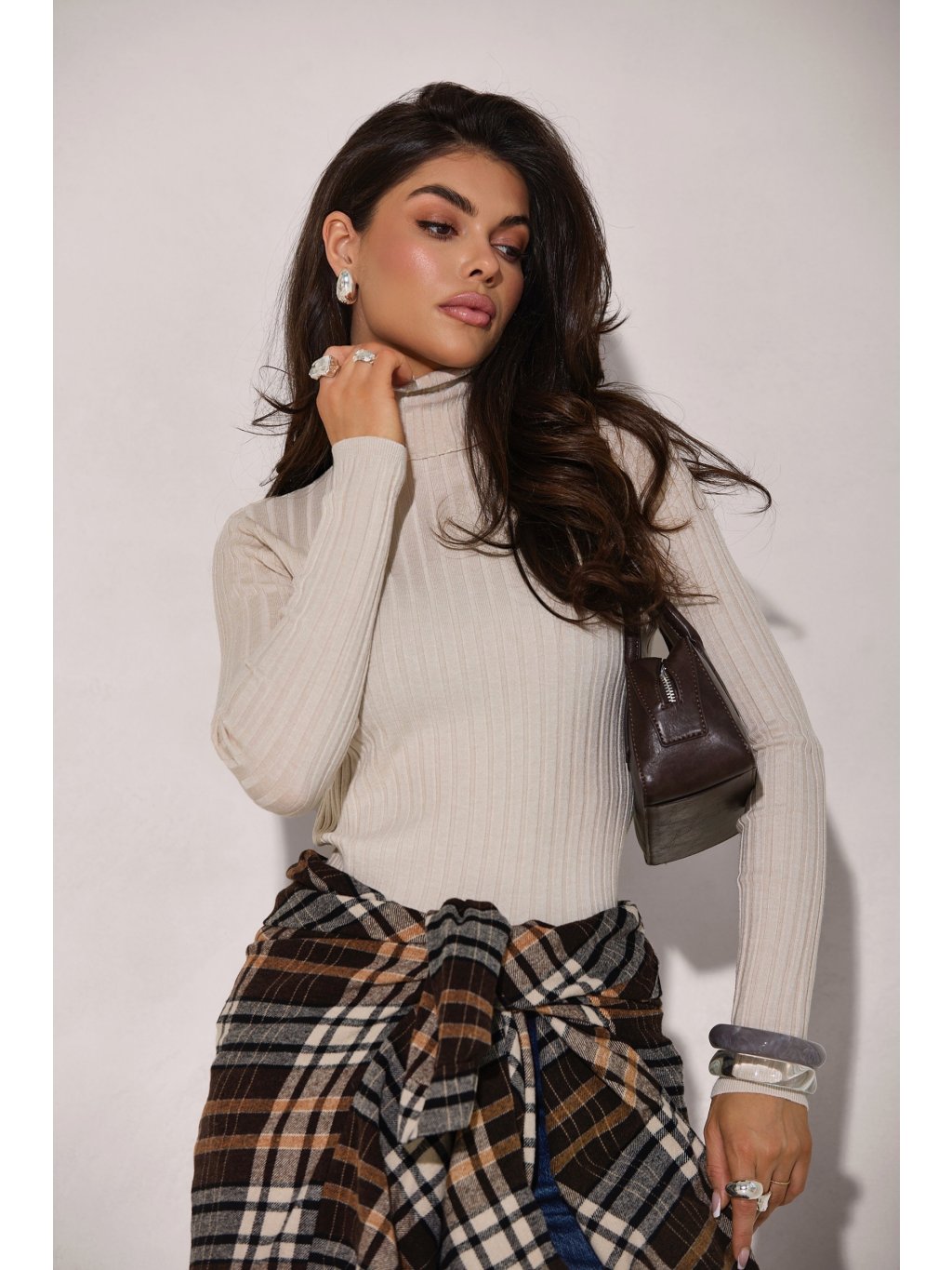 Rolák, ktorý nepotrebuje ozdoby, aby upútal pozornosť. Jeho sila spočíva v jeho tvare – úzkom strihu a rebrovanej textúre. Inšpirovaný estetikou 90. rokov, kombinuje surový minimalizmus so zmyselnou ženskosťou. Vysoký golier jemne obopína krk, zatiaľ čo elastická látka lichotí postave bez toho, aby obmedzovala pohyb. Je to ten druh jednoduchosti, ktorý vždy vyzerá luxusne – perfektne sa hodí ku klasickým džínsom, elegantným nohaviciam so širokými nohavicami alebo priliehavej midi sukni. Rolák, ktorý sa stane základným prvkom každého moderného šatníka.