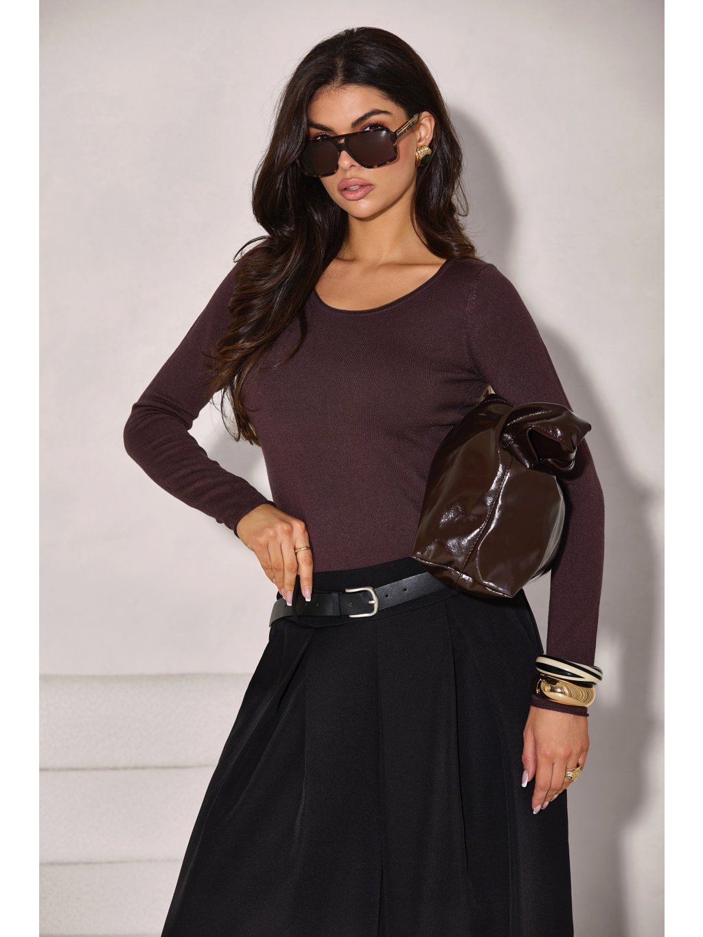 Klasický minimalistický sveter, ktorý je perfektným základom každého šatníka. Vyrobený z mäkkej, príjemnej na dotyk, jemne pletenej látky, priliehavý strih decentne lichotí postave a zároveň zachováva úplné pohodlie. Všestranný štýl, ktorý sa perfektne hodí k bežným aj elegantným outfitom – od ležérnych džínsov až po klasické nohavice alebo sukne.