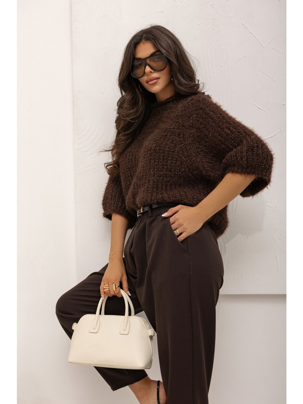 Husto pletený rolák zdobený drobnými flitrami, ktoré jemne odrážajú svetlo a dodávajú kúsku mierne žiarivý efekt. Textúra svetra je výrazná a strih je uvoľnený a pohodlný. Tento kúsok je ideálny na chladnejšie dni a hodí sa k bežným aj rafinovanejším outfitom. Krásne sa hodí k midi sukni, priliehavým nohaviciam alebo nohaviciam so širokými nohavicami a vytvára moderný a ležérny vzhľad.